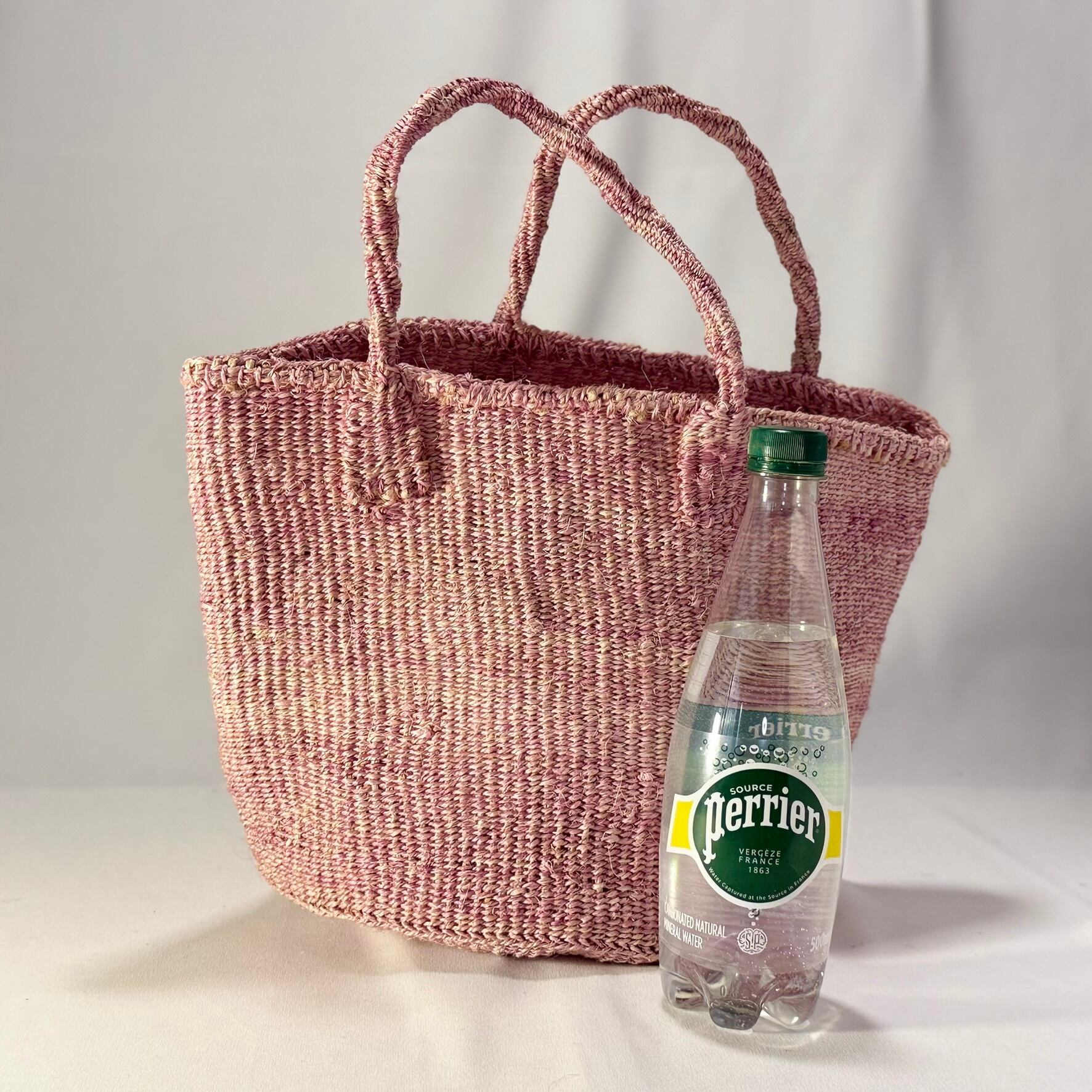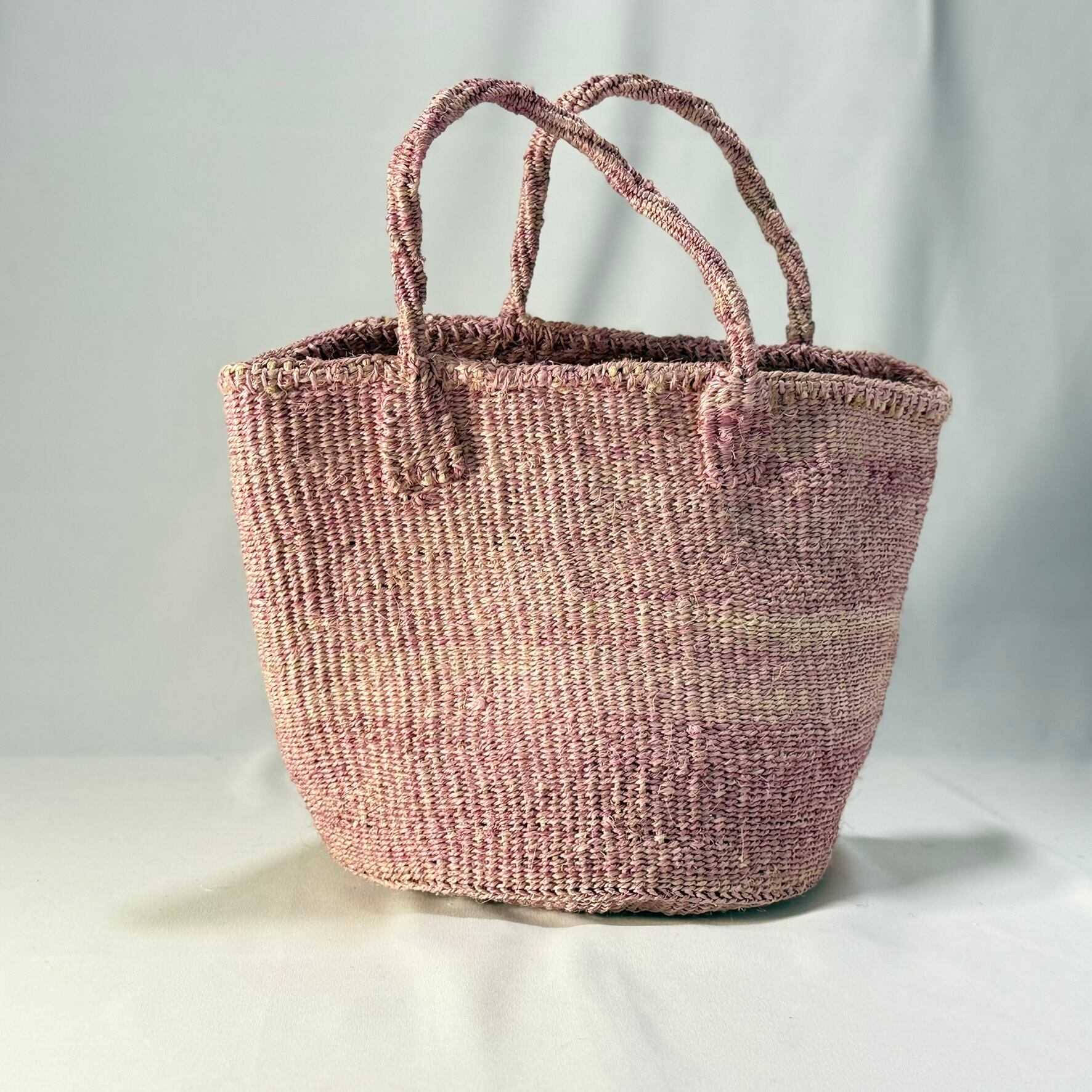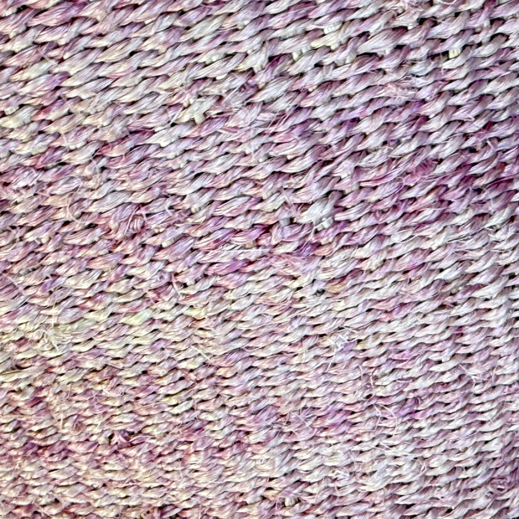 常夏に咲くブーゲンビリアの花びらで草木染にしたニュアンスピンクが魅力的なサイザル素材のかごバッグは、日常使いに便利なサイズ感、ころんとした人気のトート形デザイン。ナチュラルダイ(染め)よるムラ感が素朴で味わい深く、ピンク色でもさり気なく身に着けられます。サイザルのバスケットはとても丈夫。素朴でナチュラルな風合いを楽しみつつ、経年変化をお楽しみください。