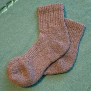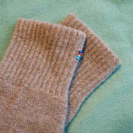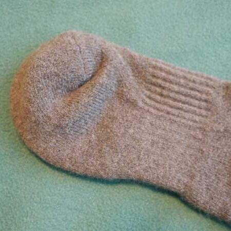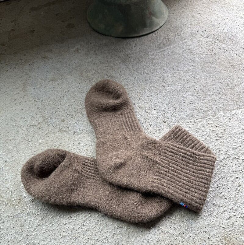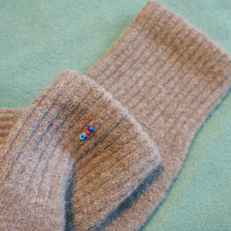 YAKの暖かさを堪能できる スタンダードタイプのルームソックス。指先から足裏の内側は暖かくてリッチなパイル編み、履き口や土踏まず部分はフィット感のあるリブ編みに、と立体的なホールガーメントで切換えながら編み立てています。