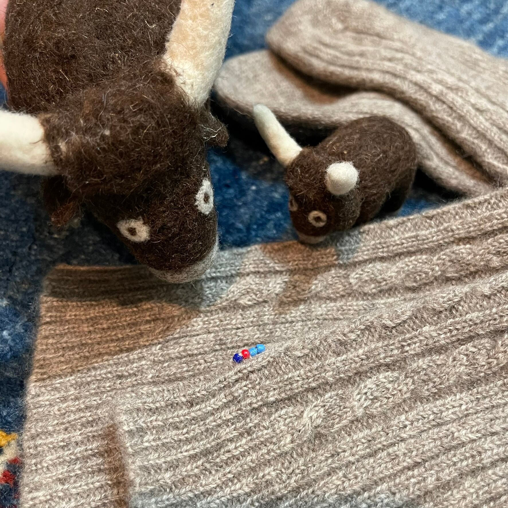 YAK100で使用している原料は、雪解けした春に年に一度だけ採取するヤクの原毛を遊牧民から直接買付け、現地スタッフが希少なうぶ毛(ダウン)のみを厳選しています。ナチュラルな無染色カラー、脱色しない優しい染色方法で加工した糸は、繊維のダメージが少ないためソフトな肌触りでとても暖か。現地の協力工場で、愛情込めた丁寧なモノづくりをしています。